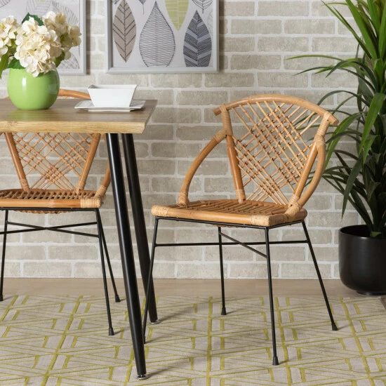 Dine with your cares aside in the remarkably unique embrace of the Pro dining chair. Made in Indonesia, this chair is comprised of a solid metal frame topped with a natural rattan seat. Curved rattan rods form a stunning, eye-catching outline while bamboo-like embellishments intertwine to create a smooth backrest. The Pro will arrive fully assembled and utilizes angled legs connected by a crisscross base for excellent stability and support. An exotic twist on modern craftsmanship, the Pro dining chair is sure to leave an impression.