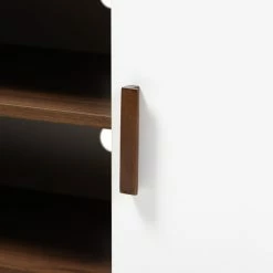 Give your living room a retro feel with the Quinn TV stand. Constructed from wood, the Quinn features a playful two-tone walnut brown and white finish. Four shelves provide ample space to store DVD players, game consoles, and more.