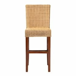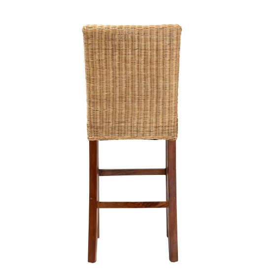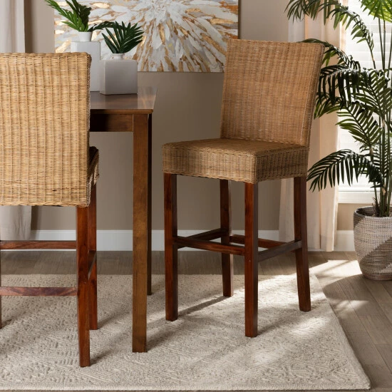 Carve out a personal rustic paradise with the soothing tones of the Racquel bar stool. Made in Indonesia, this tranquil piece consists of a robust mahogany wood frame wrapped in woven rattan. Its angled backrest encourages casual relaxation while lending a distinguished silhouette. The Racquel will arrive fully assembled and features ergonomic footrests for enhanced comfort in any setting. Granting a serene ambiance to the modern home, the Racquel bar stool elevates any occasion.