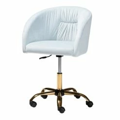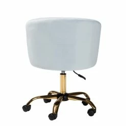 Develop your home office into an adored space with the enchanting Ravenna office chair. Made in China, this lovely piece consists of a solid metal base supporting a round seat upholstered in alluring velvet fabric. The sloped armrests form a smooth silhouetted while tufted accents lend visual texture. The Ravenna requires assembly and features caster wheels for superb mobility. 360-degree swivel and adjustable height options offer versatility, making the Ravenna office chair a terrific choice for any space.