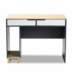 Tackle the day’s tasks on this computer desk by Baxton Studio. The clean lines provide a modern take on a mid-century design, while the combination of grey, oak, and white finishes easily complement your space. Stow office supplies in the two drawers, and enjoy the sturdy polyurethane and particle board construction.