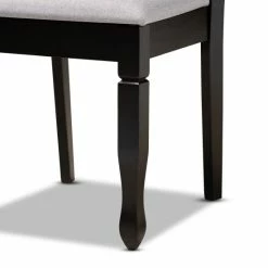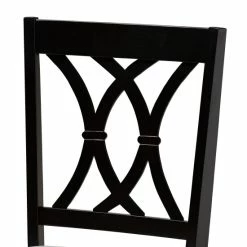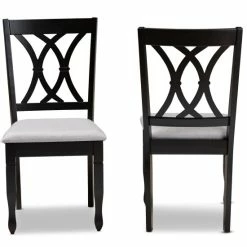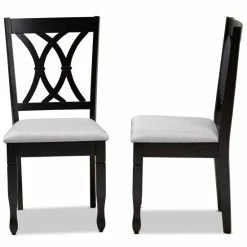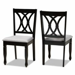 Refresh your existing dining table with this set of two Reneau armless side chairs from Baxton Studio. Each one features an open-frame backrest accented with arching vertical supports for a high-impact contemporary look that breathes life into your decor. The sturdy rubberwood frame creates a reassuring feeling of stability, and the foam-padded seat keeps your guests comfortable as they dine. With their dark espresso-finished frames and light-colored fabric upholstery, these chairs fit seamlessly into both neutral and vibrant dining rooms.