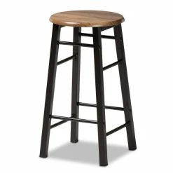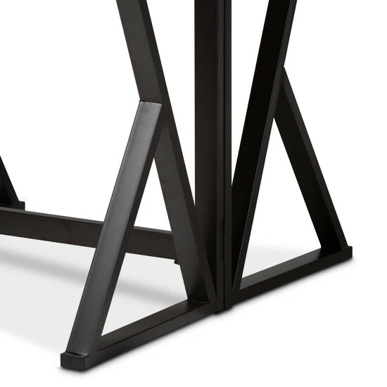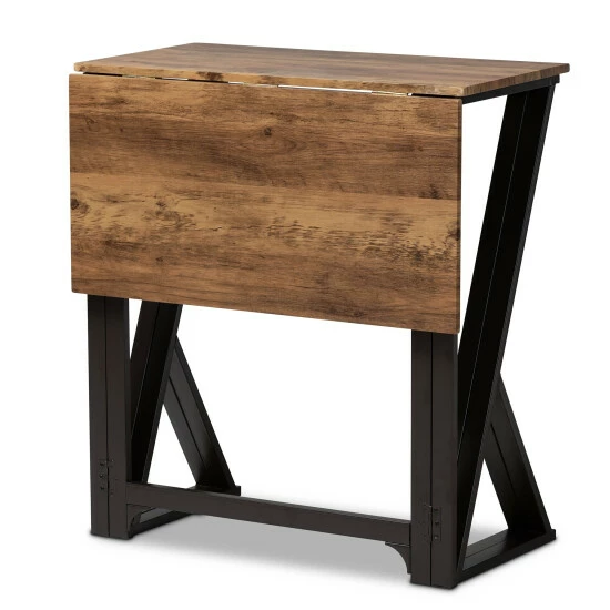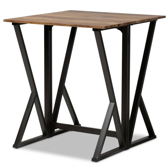 Add rustic charm to any home bar or lounge with the Richard pub set. Made in China, this set includes four bar stools and one pub table. Walnut finished wood is paired with black metal to give each piece cool, industrial appeal. Designed with style and versatility in mind, the table features a striking geometric frame, as well as an extension that can be swiftly folded down when not in use. Ergonomic footrests are fitted onto each stool to provide a comfortable dining experience. Requiring assembly, the Richard pub set is the prime choice for creating a cozy, casual dining space..