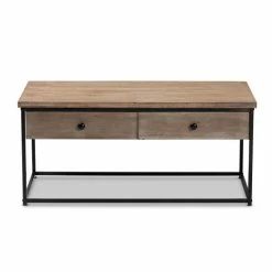 Create a cozy setting in your living room around the rustic tones of the Roderick coffee table. Made in China, this table is comprised of a wood frame supported by a metal base. Two drawers offer space to organize books, accessories, and movies while reserving the tabletop for daily use. The Roderick requires assembly and features circular metal drawer knobs that elegantly stand out against the wood grain. Showcasing a sleek outline, the Roderick coffee table serves as a wonderful anchor point in any common space.