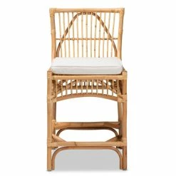 The carefree charm of the Rose counter stool brings a soothing atmosphere to any space. Made in Indonesia, this stool is comprised of a natural rattan frame adorned with bamboo-like embellishments. Its seat features a plush cushion padded with soft foam and upholstered in smooth fabric for exceptional comfort. The Rose will arrive fully assembled and features an ergonomic footrest on each side to accommodate any occasion. With an exquisite outline and laidback design, the Rose counter stool lends a tranquil ambiance to any home bar or lounge…