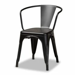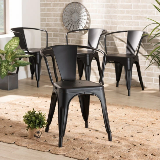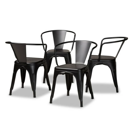 Give your dining room a sleek, industrial overhaul with the Ryland dining chair. Made in China, this set includes four chairs constructed from metal featuring a grey finish. Its curved backrest forms convenient armrests while its open design allows light to flow more easily throughout the room. The Ryland will arrive fully assembled and is set on top of angled legs for excellent stability and support. The robust style and smooth comfort of the Ryland dining chair are sure to elevate any dining experience…