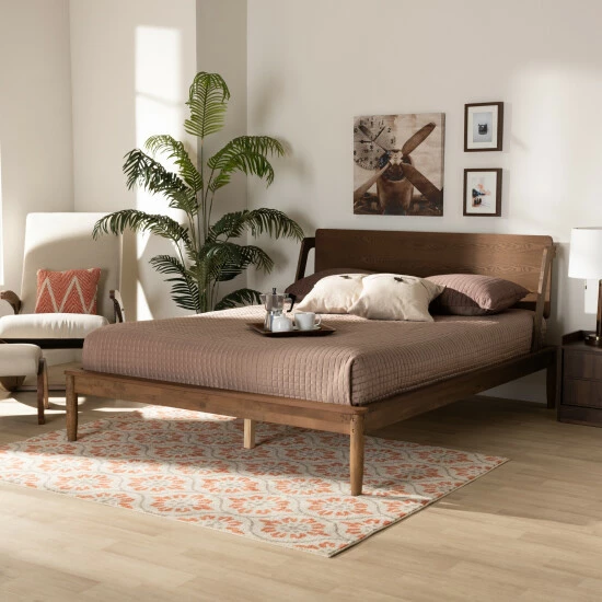- Mid-century modern style platform bed