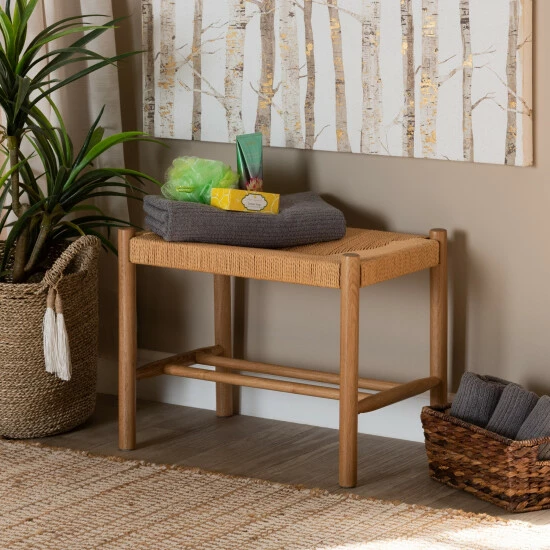 Generate an atmosphere of warmth in your space with the natural charm of the Saura bench. Made in China, this bench is comprised of a sturdy wood frame upholstered in paper hemp yarn. The seats feature a meticulous woven design to create smooth, comfortable seating for an entryway, living room, or hallway. Requiring assembly, the Saura features a slatted wood shelf underneath the seat for convenient on-hand storage. A lovely display that exudes rustic personality, the Saura bench elevates any interior…