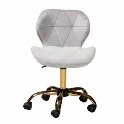 Embrace working from home with the wonderfully cozy and versatile Savara office chair. Made in China, this gorgeous piece is comprised of a solid metal base topped with an alluring velvet fabric upholstered seat. Geometric tufting on the chair exhibits a crisp, modern display while highlighting the rich hues of the velvet. The Savara requires assembly and features caster wheels for excellent mobility. 360-Degree swivel capability and adjustable height offer superb accommodation for individual needs, making the Savara chair an impressive addition to any home office.
