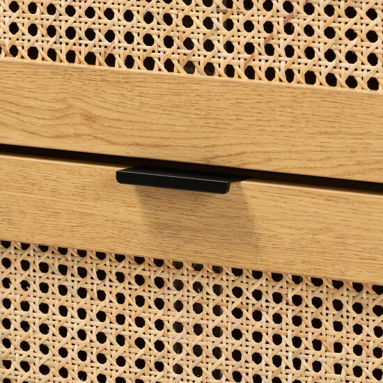 Uplift your domestic ambiance to a higher regard with the gentle tones of the Sawyer storage chest. Made in China, this handy piece consists of a wood frame supported by an openwork metal base. Three wide drawers provide superb storage for your belongings while woven rattan embellishments add mid-century flair. The Sawyer requires assembly and features slim drawer handles for a subtle touch of modern minimalism. Blending with a variety of room layouts and styles, the Sawyer storage cabinet is an easy and efficient addition to any space.