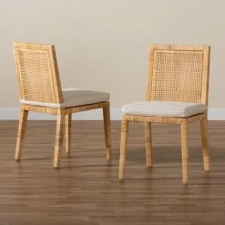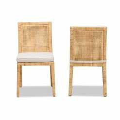 Elevate the atmosphere of any space with the casual style of the Sofia dining chair. Handmade in Indonesia, the Sofia is constructed from sturdy wood. The chair is enveloped in natural rattan for a cozy embrace that also lends a relaxed, tropical look. Fully assembled, the plush, removable cushion is padded with soft foam and upholstered in smooth fabric. The modern outline and superb comfort of the Sofia dining chair enhances any dining experience…