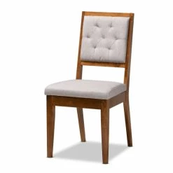 Craft an elegant arrangement for every meal with the stunning Suvi 5-Piece dining set. Made in Malaysia, this set includes four chairs and one table constructed from solid wood. Each chair features a plush backrest and seat upholstered in smooth fabric displaying a graceful diamond tufted design. Requiring assembly, the Suvi utilizes a broad, rectangular tabletop to ensure ample elbow room for each member of the table. A fantastic culmination of style and comfort, the Suvi dining set is sure to elevate any occasion…