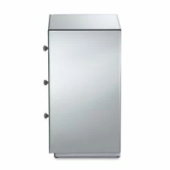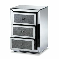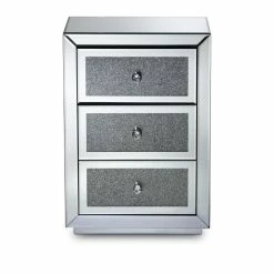 Adorn your living room with the stunning style of the Talan end table. Made in China, the Talan is comprised of a wood frame fitted with mirrored glass for an elegant aesthetic that adds glamour to any space. Three spacious drawers easily organize all your essentials, while the square tabletop is perfect for displaying decorations. Fully assembled, the end table is accented with crystal drawer knobs for added glamour. The drawer fronts are embedded with floating crystals that beautifully catch and reflect light, making the Talan end table a dazzling addition to any home…