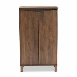Modernize your entryway with the stunning design and convenience of the Talon shoe cabinet. Made in Malaysia, this handy piece is constructed from sturdy wood. Six shelves located behind the doors provide handy storage space and can support around 10 pairs of shoes, depending on size. Requiring assembly, the Talon is supported by straight legs for a sleek, modern outline that ensures excellent stability. A stylish and practical solution to your storage needs, the Talon shoe cabinet upgrades the modern home…