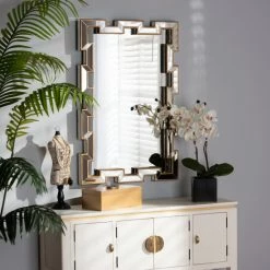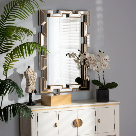Revive any wall with the captivating Tanis mirror. Framed by a striking geometric pattern, the Tanis captures and reflects the light within the room, opening up even the smallest of spaces. Its bronze metallic finish lends a distinctive, glamourous look. Place this piece above a console table in the living room or above a dresser in the bedroom. Made in China, the Tanis mirror will arrive fully assembled…