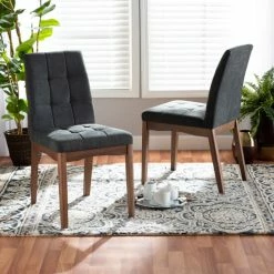 Add refreshing, modern design to your dining room with the remarkable Tara dining chair. Made in Malaysia, the Tara is comprised of a sturdy wood frame padded with plush foam and upholstered in smooth fabric. Contemporary grid tufting creates a sleek visual display while ensuring a cozy experience. Requiring assembly, the Tara is supported by walnut brown finished wood legs that provide an atmosphere of warmth. A streamlined blend of modern style and comfort, the Tara dining chair is a terrific addition to any dining space…