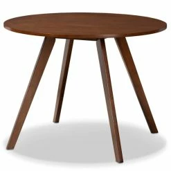 Comfortable and efficient design make the Timothy dining set an easy addition to any dining space. Made in Malaysia, the Timothy is constructed from durable wood and comfortably sits up to four. Walnut brown finished wood and a round tabletop lend mid-century charm while providing plenty of elbow space for each member of the table. Assembly is required and each chair is padded with foam underneath a layer of soft fabric for comfort. With its compact size, the Timothy dining set is an easy addition to dining rooms and nooks with limited space..