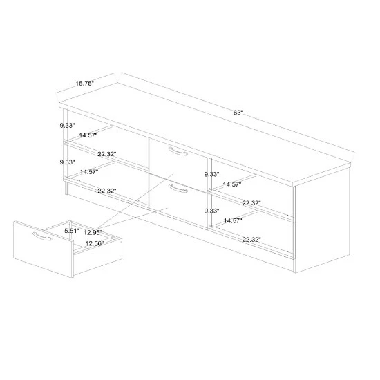 - Overall dimensions: 24.8 inches high x 63 inches wide x 15.75 inches deep