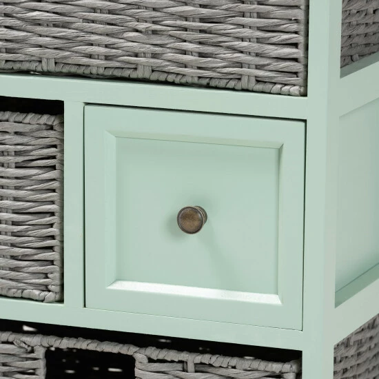 Embellish your space while managing clutter with the alluring design of the Valtina storage unit. Made in China, this stunning piece consists of a solid wood frame fitted with wicker storage baskets. Three drawers are arranged geometrically against each basket for pleasant display with superb storage potential. The Valtina will arrive fully assembled and features round drawer knobs that lend a contemporary touch. An enthralling household organizer, the Valtina storage unit transforms the atmosphere of any interior.