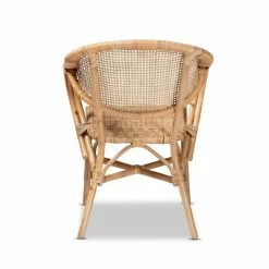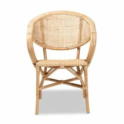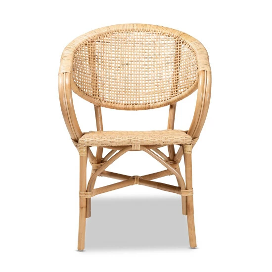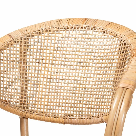 Generate a peaceful, gentle atmosphere for every meal with the natural character of the Varick dining chair. Made in Indonesia, this chair is comprised of a natural rattan frame featuring woven embellishments. The smooth curves of the backrest envelop around the chair to form convenient armrests. The Varick will arrive fully assembled and utilizes an angled seat for enhanced comfort. A superb blend of comfort and style, the Varick dining chair is sure to leave a lasting impression. This is a product of nature and may have variations in areas such as, but not limited to, color, pattern, grain and texture. The hair-like strands of rattan/rattan-fiber are common due to nature of the material. .