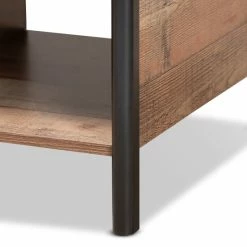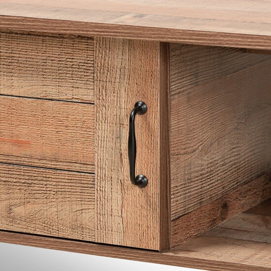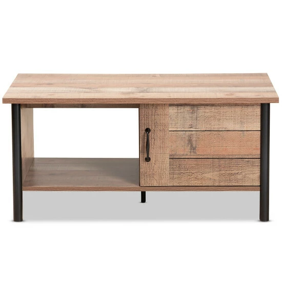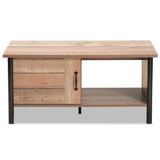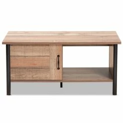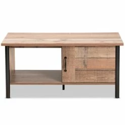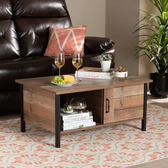 Add valuable space to your living room with the rustic personality of the Vaughan coffee table. Made in Malaysia, the Vaughan is constructed from wood showcasing a distinctive rustic oak brown finish. An enclosed shelf behind the door provides secure storage space for all your living room essentials, while the open shelf provides display space. Requiring assembly, the Vaughan is accented with black metal handles for an industrial touch. A superb blend of handy design and modern convenience, the Vaughan coffee table is an exceptional addition to the modern home…