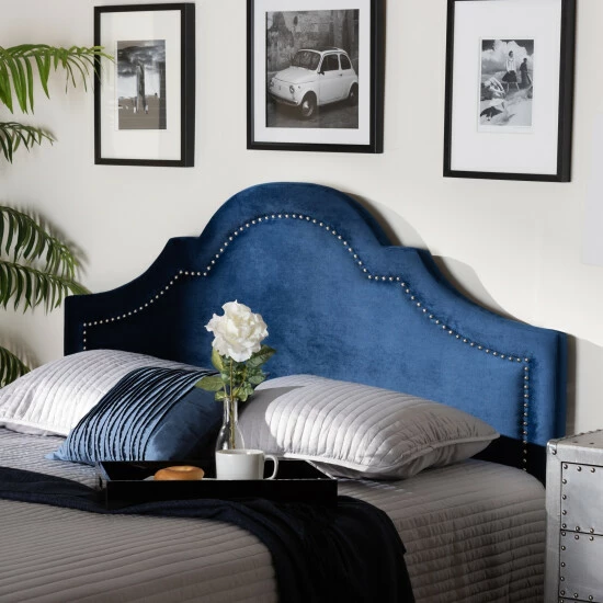 Redesign your guest or master bedroom with this velvet fabric headboard from Baxton Studio. This headboard comes with two pre-drilled holes for easy attaching to the bed frame. Constructed from MDF wood and foam, this headboard is durable, sturdy, and long lasting, and it comes in a variety of sizes to fit your current mattress set and frame.