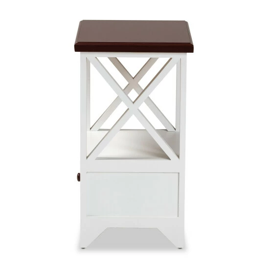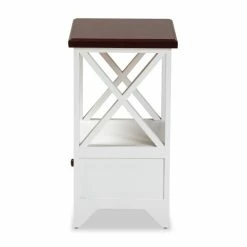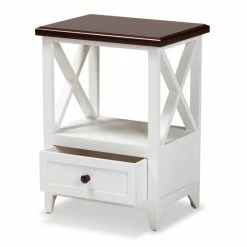 Put the finishing touches on your interior with the fantastic Vesta end table. Made in China, this handy piece is crafted from sturdy wood. One open shelf creates a lovely display for decorations while the drawer offers more secure storage space. Comes fully assembled, the Vesta features crisscross side beams that allow light to flow more easily throughout the room while lending a cool, geometric look. Inset paneling completes the look, making the Vesta end table a remarkable addition to any space…
