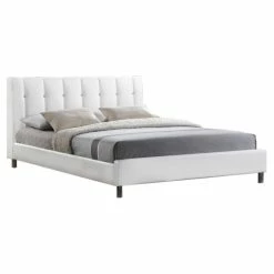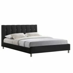 Bring a bedroom up to date with this contemporary queen-sized bed, which is finished off with a tufted, fabric-upholstered headboard. The durable rubberwood frame has foam padding for support and comfort, and the strong, chrome-plated steel legs benefit from non-marking feet to protect your floor.
