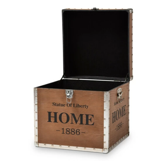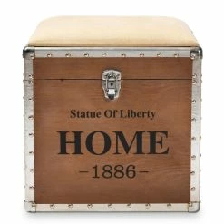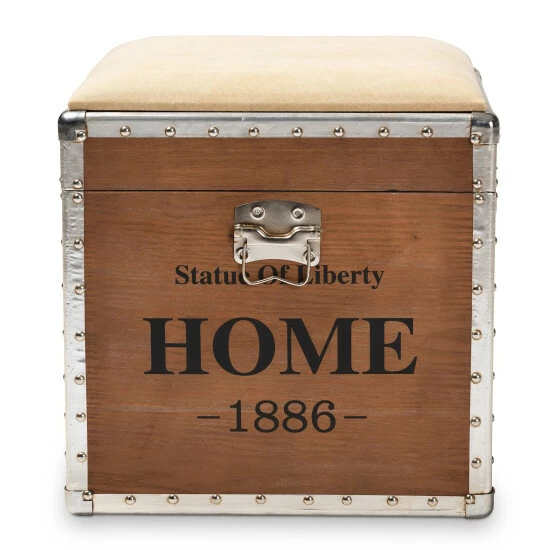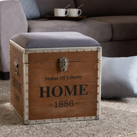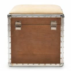 Spruce up your home with this trunk ottoman. Designed in a light brown finish, this ottoman uses a metal and engineered wood construction to give it lasting durability, and the polyester fabric upholstery adds a luxurious touch. This ottoman provides an inner compartment for added storage space, and the rivet detailing along the metal edges provides a vintage touch.