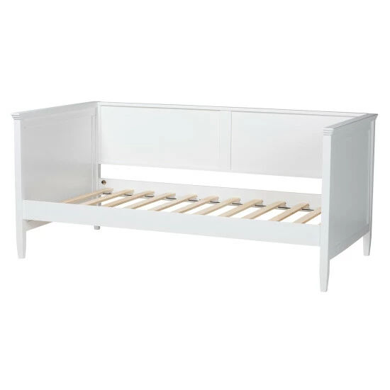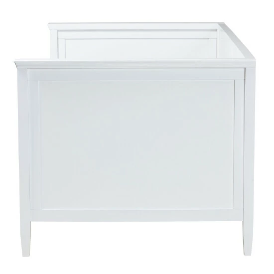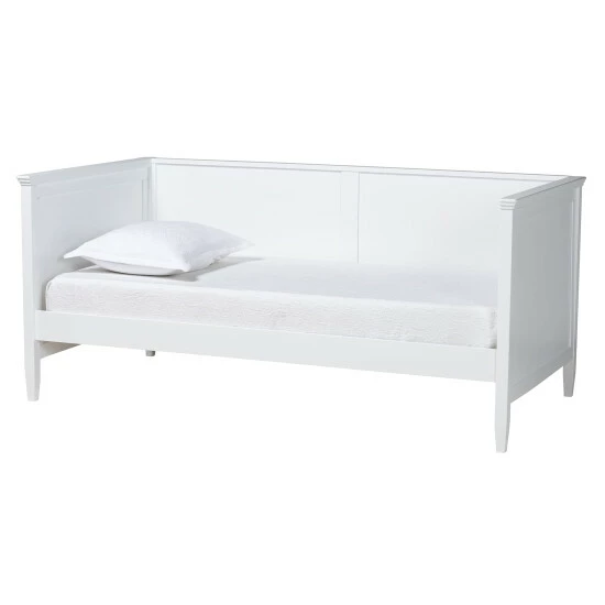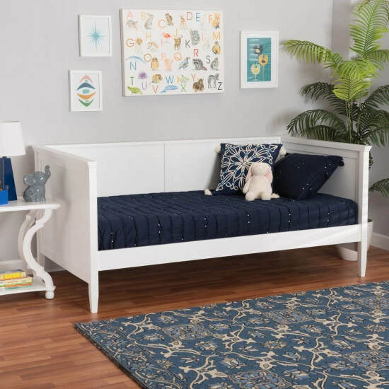 Inject the timeless charm of traditional craftsmanship to your bedroom with the exquisite beauty of the Viva daybed. Made in Malaysia, this lovely piece is crafted from sturdy wood. Raised borders accented with inset paneling create a haven of comfort perfect for lounging. The Viva requires assembly and utilizes wood slats for mattress support, eliminating the need for a box spring. Tapered legs add a sleek touch to the broad silhouette, making the Viva daybed a delightful addition to any bedroom space.