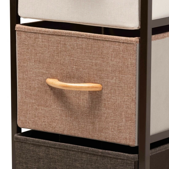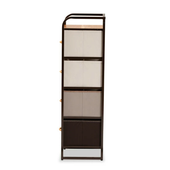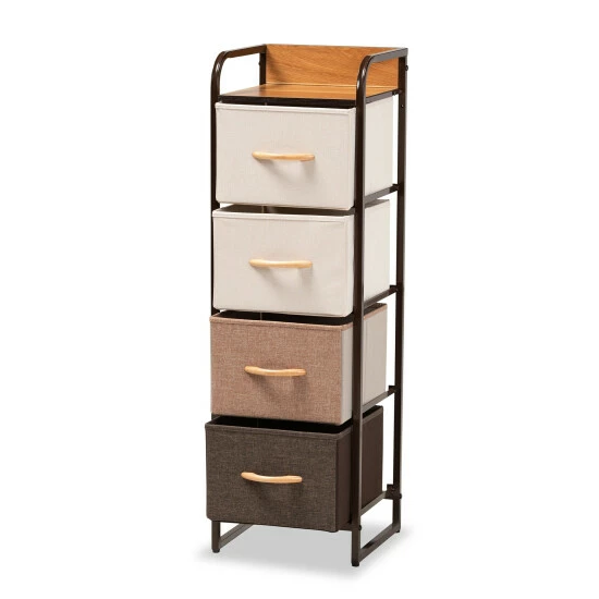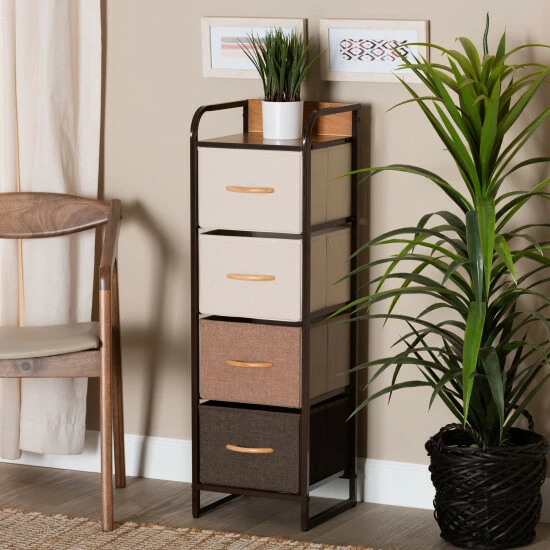 Manage the needs of your home with the outstanding versatility of the Volkan storage cabinet. Made in China, this cabinet is comprised of a solid metal frame fitted with wood shelves and fabric upholstered drawers. Four drawers offer exceptional storage space to organize your belongings while the wide shelf creates a lovely display for decorations. Requiring assembly, the Volkan features curved drawer handles that stand out against the wood. A fantastic solution to your storage needs, the Volkan cabinet transforms the atmosphere of any space…