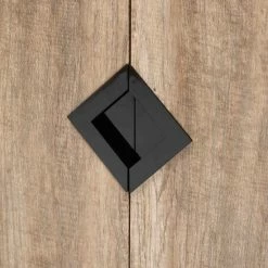 Enhance your entryway with the chic and functional Wales shoe cabinet. Made in Malaysia, the Wales features two doors that conceal four shelves with storage space for up to 16 pairs of shoes. Black door handles lend a cool geometric look that complements the rustic oak finish on the wood. The cabinet is also fitted with three open shelves and a spacious top surface that provides ample space to display books and decor. Tapered legs add a retro touch and provide elevation to deter dust buildup. Requiring assembly, the Wales cabinet is the prime choice for keeping your entryway tidy and stylish. .
