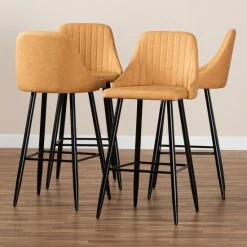 Easily add character to any home bar or lounge area with the unique Walter bar stool. Made in China, the Walter is composed of a metal frame and fitted with a sleek faux leather upholstered seat. Stylish channel tufting adds a contemporary look, while foam padding ensures plush comfort. Requiring assembly, the Walter features ergonomic footrests on three sides. A visually stunning design equipped with excellent comfort makes the Walter bar stool an easy upgrade for any dining space…