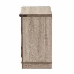 Featuring an eye-catching farmhouse inspired design, the Wayne shoe cabinet is a stylish solution to organizing your entryway. Made in Malaysia, the Wayne is crafted from sturdy wood finished in a light oak brown. The hinged doors reveal three spacious shelves capable of storing around 9 pairs of shoes, depending on size. Requiring assembly, the large, rectangular tabletop offers ample surface area to place keys, mail, and other miscellaneous items. Showcasing a striking aesthetic that adds personality to any space, the Wayne shoe cabinet is sure to elevate any home…
