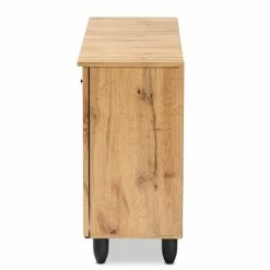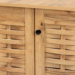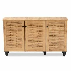 Keep your shoes organized and out of sight with the Winda shoe cabinet. Made in Malaysia, this shoe cabinet features a stylish contemporary design and an oak brown finish that adds visual warmth to any interior space. Three doors conceal six shelves with storage space for up to 12 pairs of shoes, depending on size. Requiring assembly, the Winda utilizes slits embedded within the doors to enable air circulation and prevent mold growth on your shoes. A charming and functional addition, the Winda shoe cabinet is a fantastic solution to entryway storage.. Ideal for smaller dining rooms and nooks, the Sanford dining nook set rejuvenates any space.