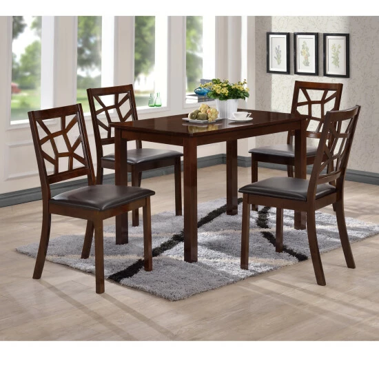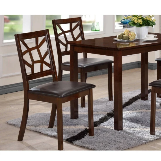 Because time with family is important to you, we introduce our stylish, inviting Lucy Dining Chair. This set of two chairs makes it easy to gather with loved ones. This dining room furniture is made with eco-friendly solid rubber wood with a beautiful very deep brown stain. Each dining room chair is carefully crafted with a trapezoid shaped backrest and black faux leather seat.