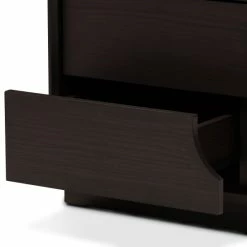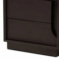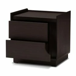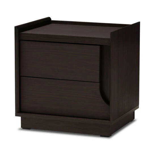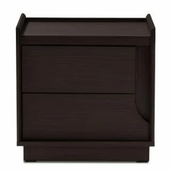 The Larsine 2-drawer nightstand is just the right blend of unique, modern, and dynamic. The modern and contemporary-inspired design is both on trend and lasting. The Larsine’s engineered wood frame is finished all over in brown, with two drawers.