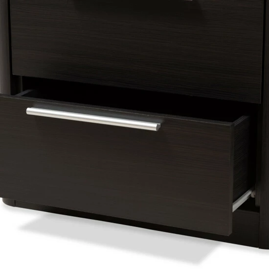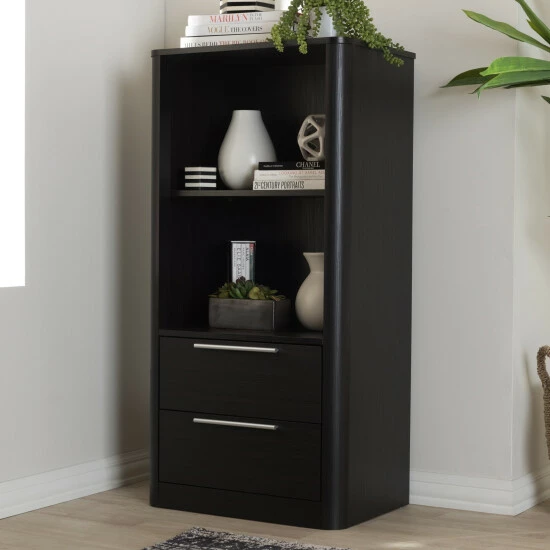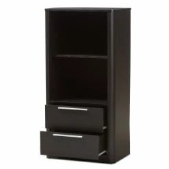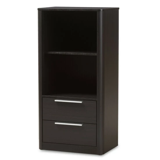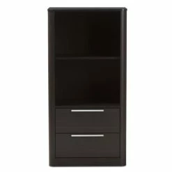 The Carlingford 2-drawer bookcase solves your display and organizational dilemmas in one go. Featuring two spacious open shelves, and two lower drawers capable of supplying ample storage for larger amenities, the piece awards you with versatile functionality. Working well as a home office organizer or living room display cabinet, its profiled edges, finishing and silver metal hardware accents assure the Carlingford bookcase will cut a handsome figure, wherever it calls home.