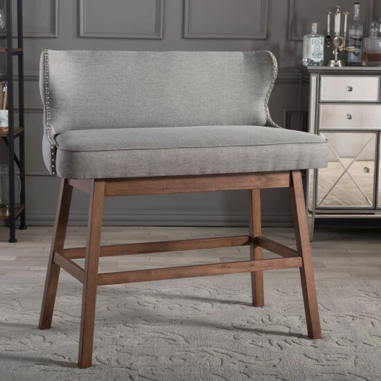 Bring a unique seating option to your wet or breakfast bar with this Baxton Studio bar bench. Fabric upholstery and naihead trim offer upscale style, while the rubberwood base provides long-lasting stability. Foam cushioning lends added comfort for hours spent dining with friends.