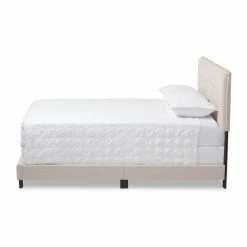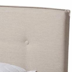 Soften the look of your bedroom with this contemporary fabric bed from Baxton Studio. Upholstered in 100-percent polyester and featuring a padded headboard for comfort as you watch TV or read, this bed adds a relaxing element to your space. Solid rubberwood legs are durable and stable, and the neutral coloring of the bed blends well with most decor schemes.