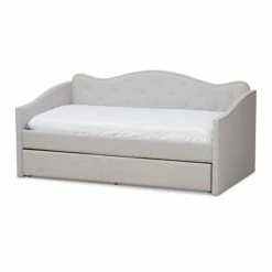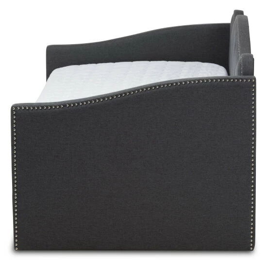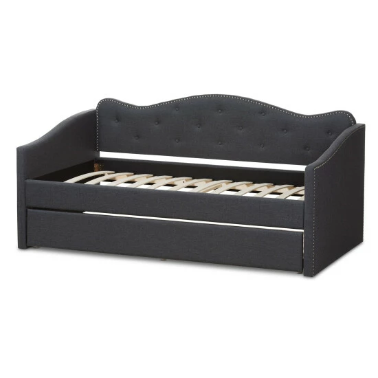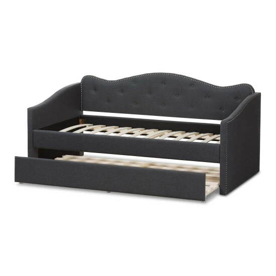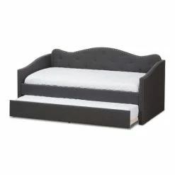 Provide a comfortable spot for unexpected guests to rest with this Baxton Studio daybed. This comfortable bed does double-duty as a sofa during the day, and a hidden trundle brings extra sleeping space for guests whenever needed. With a sloping back and nailhead trim, this classy profile works well in traditional and transitional decor.