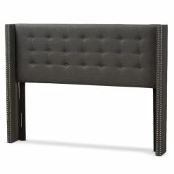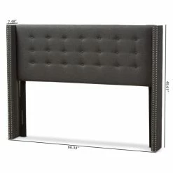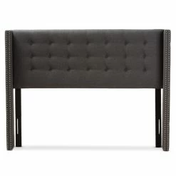 Exhibit luxury looks in your bedroom with the focal point of the lovely Ginaro greyish beige fabric upholstered winged headboard. Constructed of solid rubberwood and plywood for strength and sturdiness, the Ginaro features button-tufted design in diamond shape and winged headboard with silver nail heads trims for luxury look in your bedroom. For extra comfort and an up-to-date look, the Ginaro is upholstered with greyish beige polyester fabric over the padded foam for softness and shape that’s comfortable to lean against.