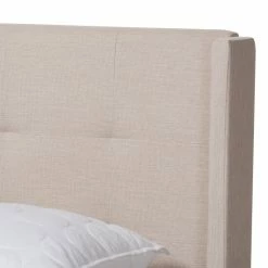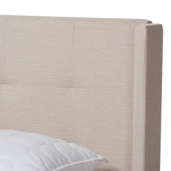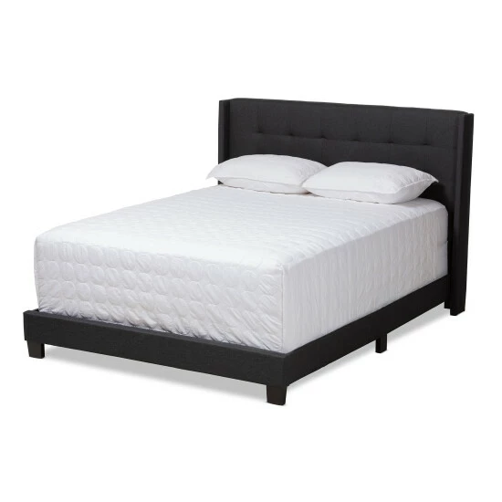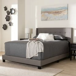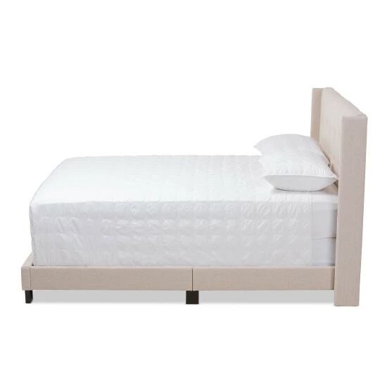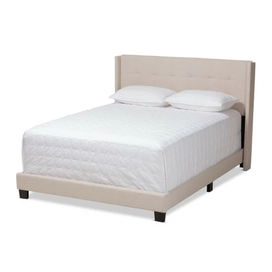 Update your bedroom decor with this contemporary bed from Baxton Studio. The MDF frame is padded with foam, upholstered with polyester, and detailed with subtle tufting. Choose from three neutral fabric colors and three sizes to fit your decor needs.