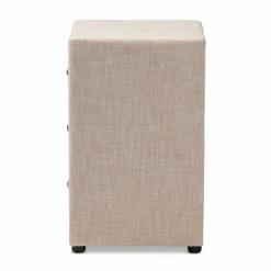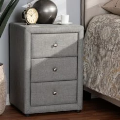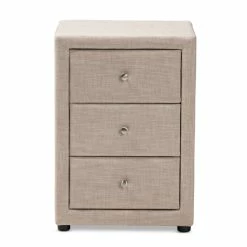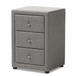 The Tessa 3-Drawer nightstand exemplifies how minimalism can be chic and sophisticated. The modern and contemporary-inspired design emphasizes clean lines and smooth surfaces. The Tessa features a foam-padded plywood and hardwood frame with all-over fabric or faux leather upholstery.
