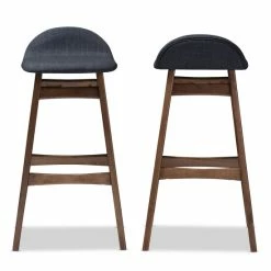 Integrate mid-century finesse into your entertainment space with this set of two bar stools by Baxton Studio. Robust rubberwood legs provide reliable support and enduring strength, while the padded seat creates a relaxed atmosphere. The fabric upholstery comes in a dark blue hue that easily melds with your existing color scheme.