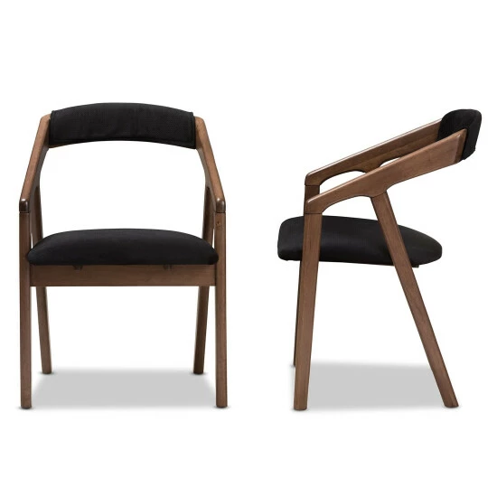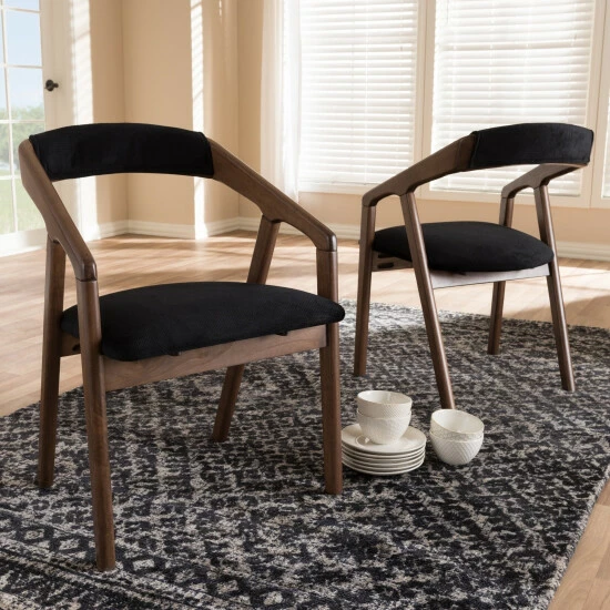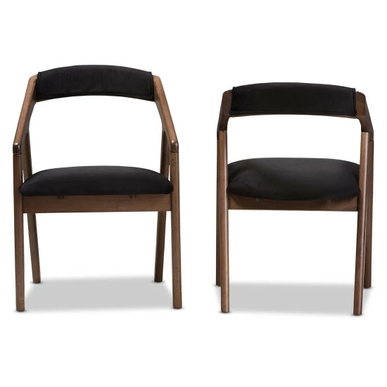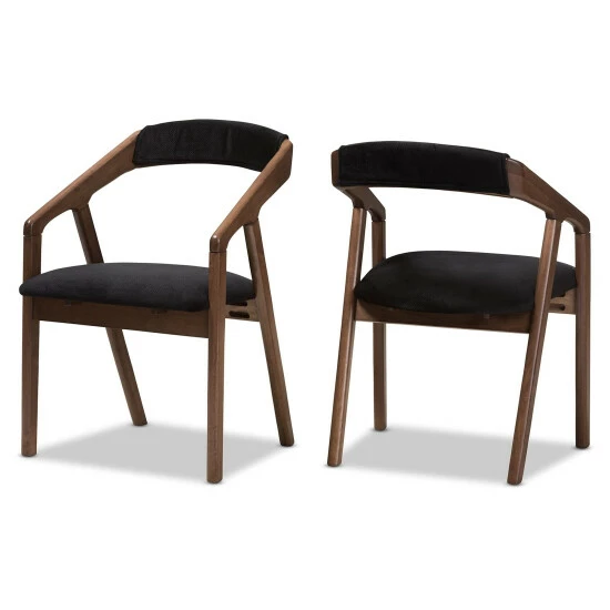 Outfit your kitchen or dining space in mid-century style with this black fabric dining chair set. Crafted from solid rubberwood for durability, this set of two dining chairs features padded velvet fabric seats, so your guests can dine in complete comfort at your next dinner party.
