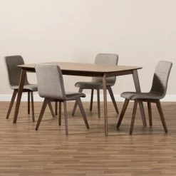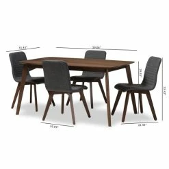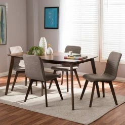 Slightly contoured for comfort and luxury in its modern color, the Sugar five-piece dining set is the perfect addition to your home. The Sugar chairs are upholstered in fabric, perfect for everyday seating around the dining table or mixing and matching with other colors for a pop of modernity. The table of the Sugar dining set has a rounded edge design, encouraging a casual, mid-century modern inspired vibe.