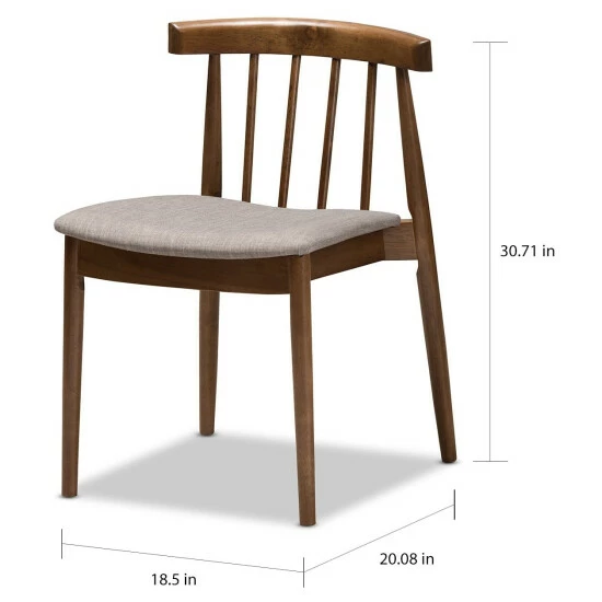 The dining set is a timeless design reminiscent of the traditional English dining room. Crafted from solid rubberwood frame to ensure perfect construction for years to come, this dining set comes with grey polyester fabric seat, which will lighten up any living space. Long, dainty legs combined with a classy spindle back create clean lines and a classic shape that make this dinette at home in almost any decor.