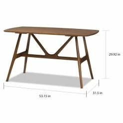 - Materials: table: solid rubberwood; chairs: fabric “polyester 100%”, solid rubberwood, foam