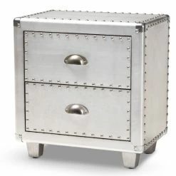 Best Pirce 🛒 Baxton Studio Davet French Industrial Silver Metal 2-Drawer End Table 🎁